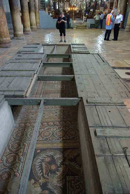 The location of Jesus’ birth is commemorated today in the famous Church or Basilica of the Nativity. The entrance is small, and its unassuming door was lowered in AD 1500 to stop looters from driving their horses and carts in. This current building, built by Emperor Justinian in the 6th century, is the oldest church in the Christian world. It replaced the original church built by Constantine and dedicated in AD 339 over the cave thought to be Christ’s birthplace. You can still see ancient mosaics from Constantine’s structure through trapdoors on the floor. While the Persians destroyed every church in the Holy Land in AD 614, this church was preserved because they saw the mosaic of the Magi wearing traditional Persian dress.